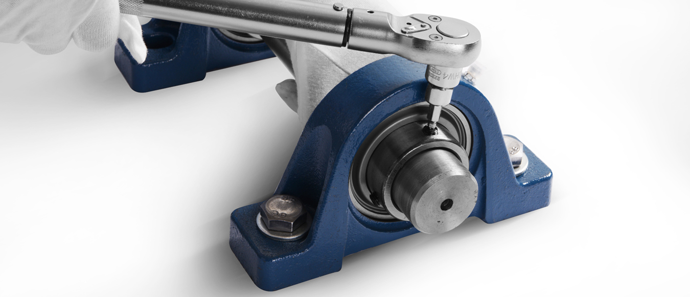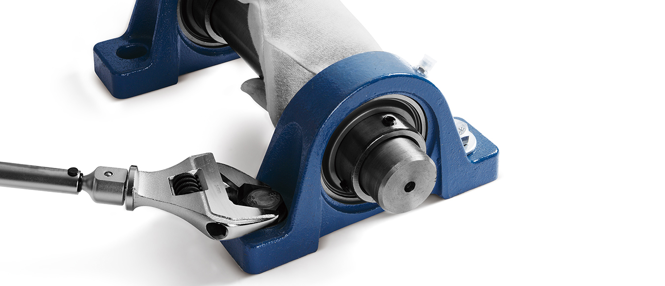 用扭矩扳手按規定的鎖緊扭矩將軸承座的安裝螺栓擰緊。